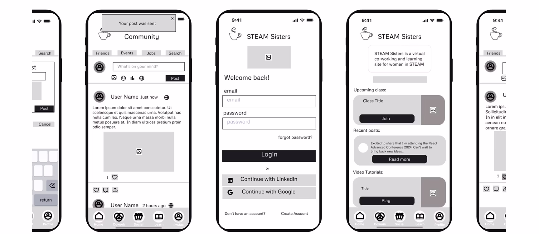 For the Steam Sisters app, I conducted remote usability testing with five participants to evaluate key user flows, including joining virtual coworking, posting in the community, and accessing video classes. The feedback revealed areas for improvement in both visual clarity and onboarding communication. Participants suggested increasing font sizes to enhance readability, especially on mobile devices, and recommended adding a clearer explanation of the acronym "STEAM" (Science, Technology, Engineering, Arts, and Math) for users unfamiliar with the term. These insights guided iterative revisions to improve accessibility and user understanding.
